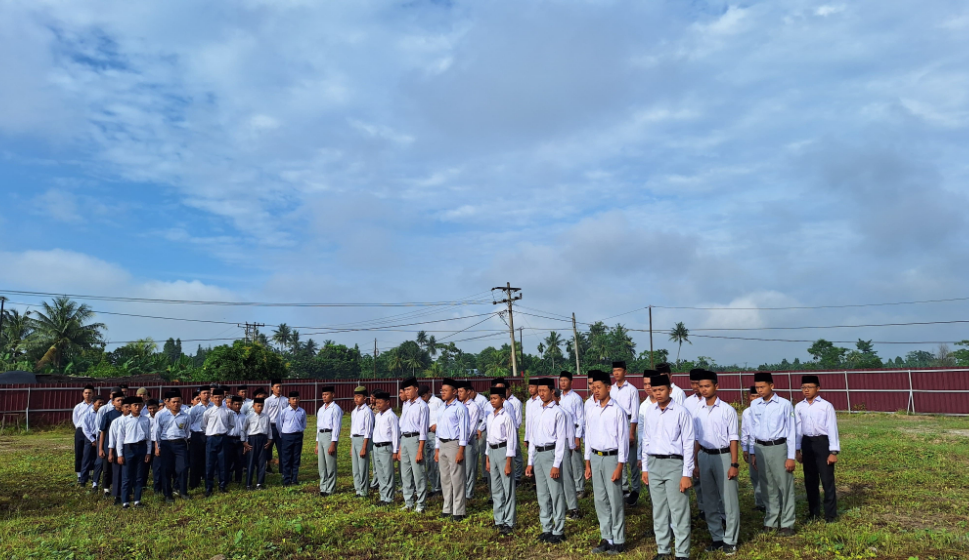 بدأت المراسم في تمام الساعة 07:00 صباحًا في الساحة الرئيسية للمعهد، حيث تم بدء الفعاليات بتقرير من قائد الحفل إلى المشرف على المراسم. بعد ذلك، تم رفع علم merah putih بواسطة فرقة رفع العلم، مع ترديد النشيد الوطني “إندونيسيا رايا” من قبل جميع المشاركين في الحفل. وقد جرى رفع العلم بفخر، مما يعكس روح الاستقلال التي لا تزال مشتعلة في قلوب الطلاب.