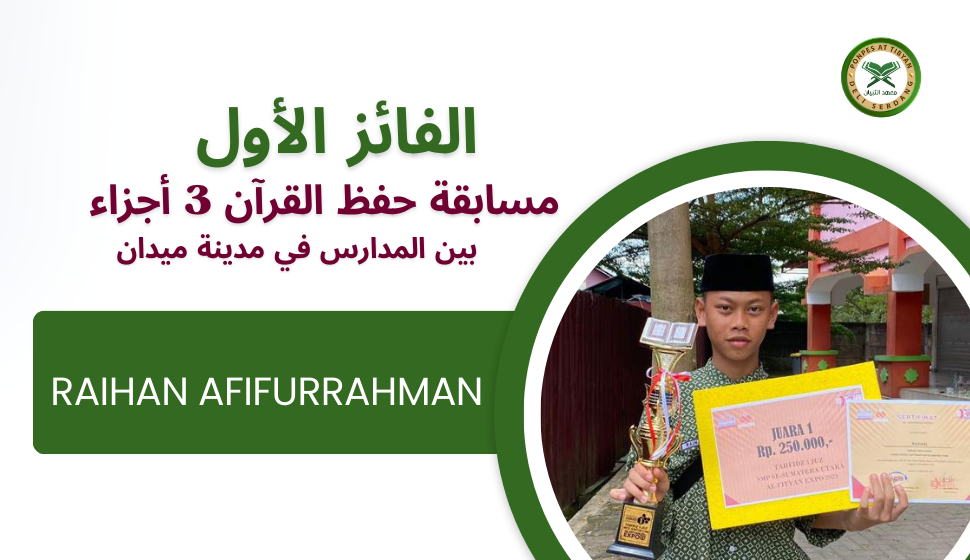 ريحان أفيفورحمان، طالب في الصف الثاني في مدرسة مشهورة للتعليم الإسلامي في إندونيسيا، حقق إنجازًا ملحوظًا بتحقيقه المركز الأول في مسابقة حفظ القرآن الكريم في شمال سومطرة في فئة الجزء الثلاثي. تم تحقيق هذا الإنجاز في إطار فعاليات “معرض الفتيان 2023” في مدينة ميدان. بفضل تفانيه واجتهاده، نجح ريحان في تفوقه على المشاركين الآخرين، مما يكتب إنجازًا يعتز به الحلقة الدينية التي ينتمي إليها، ويُعَدُّ مصدر إلهام لزملائه الطلاب في حفظ القرآن. هذا الإنجاز يبرز أيضًا التزام ريحان بتطوير العلوم الإسلامية وسط تحديات العصر.